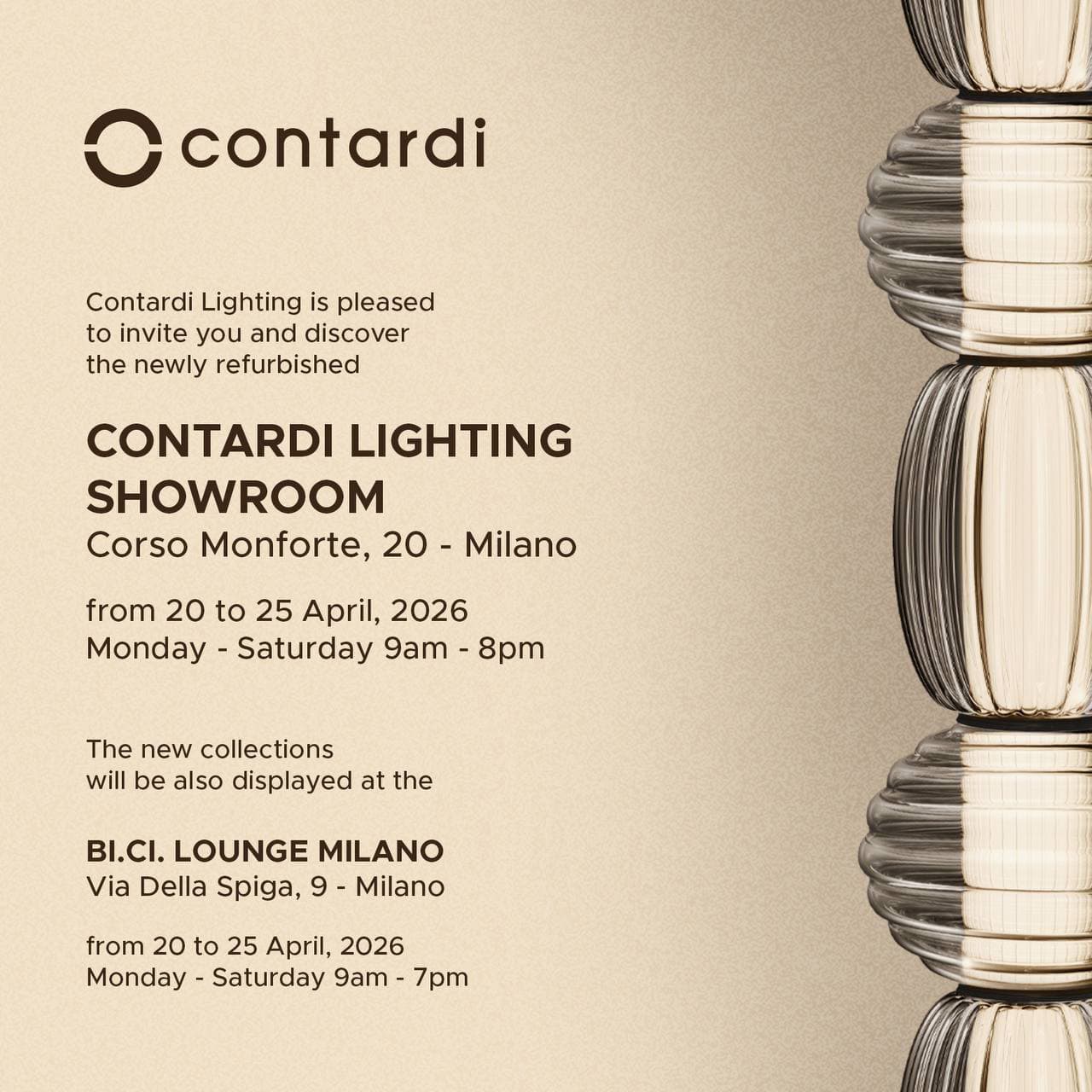 Сontardi представит новинки во время Milan Design Week в шоуруме по адресу: Corso Monforte, 20, метро San Babila.